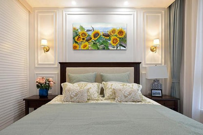 Ardemy Sunflower Wall Art Canvas Flowers Yellow Picture Rustic Floral Field Landscape Painting, Countryside Large Framed Artwork for Living Room Bedroom Bathroom Dinnng Room Office Home Decor 48"x24"