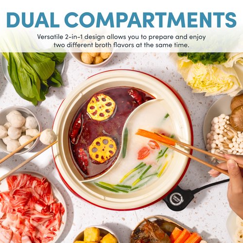 - RAPID BOIL: Insert the cool-touch temperature probe and turn the dial for rapid heat up to 450°F! This electric Chinese hot pot keeps broth simmering at the perfect, stable temp.