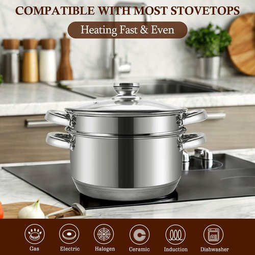 - 【Tri-Ply Construction & Compatibility】Responsive aluminum core bonded with 2 layers of durable stainless steel for maximum durability and fast, even heat distribution. Compatible with most stovetops, including induction, gas, electric, halogen, glass, and ceramic