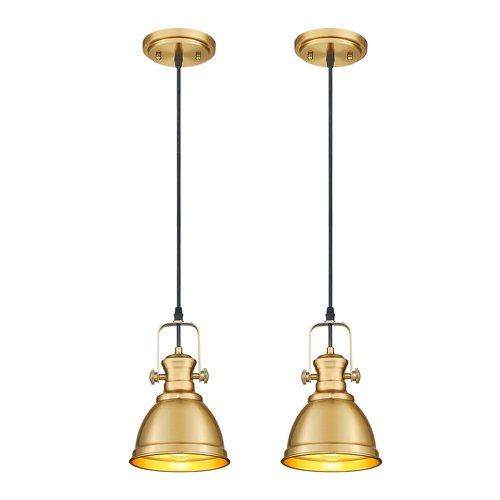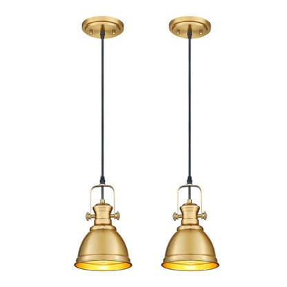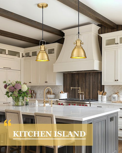 Audickic 2 Pack Pendant Lights Kitchen Island, Farmhouse Hanging Lights Fixtures with Metal Shade, Rustic Kitchen Pendant Lighting Over Island for Dining Room, Brushed Gold, AD-2151-1P2-GD