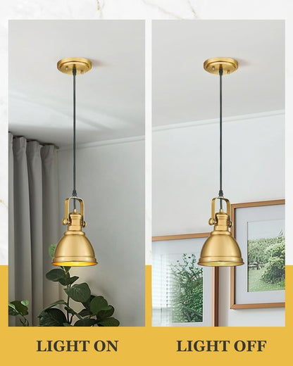 - Trending Design: The pendant light fixtures features a rustic design that combines brushed gold and brass finishes, creating a striking contrast. The all-metal construction adds an industrial touch to your space, making it not just a light but a piece of art