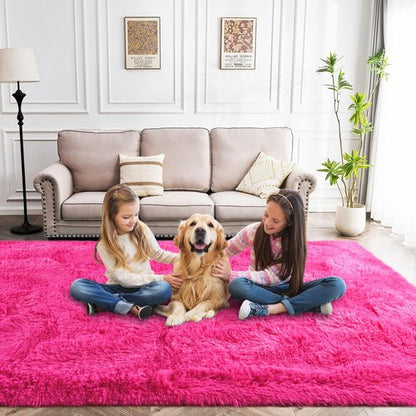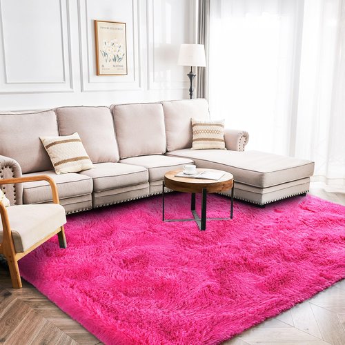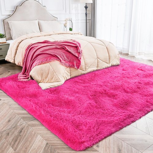 Awaytail Fluffy Area Rug for Living Room 8x10 Feet, Hot Pink Shaggy Rugs for Bedroom 8x10 Area Rugs Non Slip Clearance