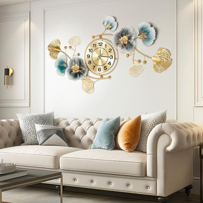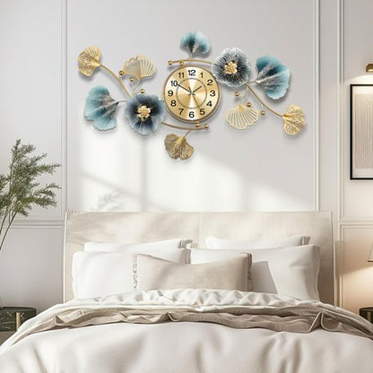 Axioglo Wall Clocks for Living Room Decor,Large Wall Clock,3D Creative Metal Ginkgo Leaf Design,with Silent Movement Wall Clocks for Home Wall Decor Clock(47"x23")