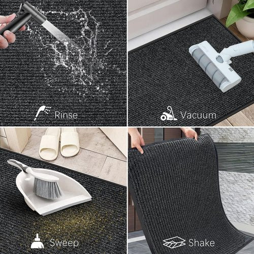 - 【Easy to Clean】The indoor outdoor door mat can be cleaned with a vacuum cleaner, broom, or by tapping the backing and shaking the mat. For a more thorough cleaning, rinse the floor mat with a garden hose and hang it in a well-ventilated area to air dry or use a dryer.