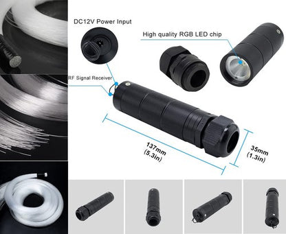 - 【Multicolor Lights & Mix Effect】:Using RGBW four lamp beads, the fiber optic light can emit multicolor lights including 16 static colors and dynamic mode by remote, Mixing different size fiber optic bring more wonderful effect, Allowed to combine RGB colors with pure white light to create other colors