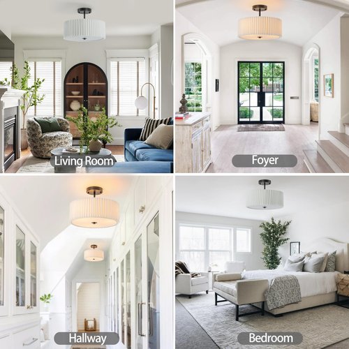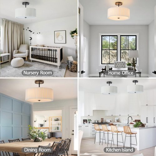 - IDEAL CHOICE:The beautiful semi flush mount ceiling light fixture is easy to install,requiring no complex tools or skills,making it the perfect DIY project for your home.The bedroom ceiling light measures 12.5 x 9.8 inches and the flush mount light is compatible with 3 E26 bulbs-maximum 60W/Not Included.The stylish dining room ceiling light is ideal for rooms with moderate ceiling heights,blending seamlessly with your decor and adding a touch of elegance Transform your space with this ceiling mount light