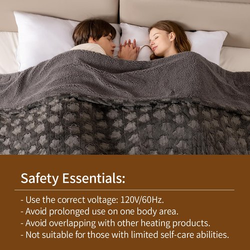 - [Auto Shut-Off Feature (1-12 Hours)] Enjoy peace of mind with the optional auto shut-off feature, ranging from 1 to 12 hours. This convenient safety feature automatically turns off the blanket after your desired duration, providing energy efficiency and ensuring worry-free use.