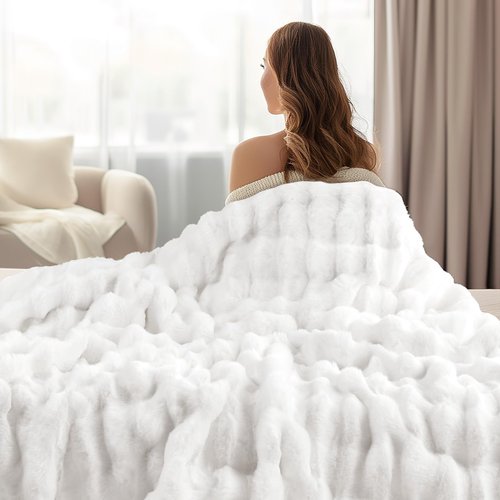 - 【Luxurious Aesthetic Appeal】: The bubble jacquard faux rabbit fur, combined with a distinctive 3D pattern, adds a touch of opulence to your living space. This textured, stylish plush blanket not only offers plush comfort but also enhances your room's aesthetic, making it an ideal decorative piece that impresses and delights.