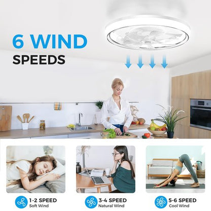 - [SMART REMOTE & APP CONTROL] - All functions of the Biukis ceiling fan with light and remote control can be adjusted via remote control or APP. The new upgraded APP remote control allows you to adjust the brightness, color temperature, timer function, fan speed (6 levels), natural wind mode and reverse fan. The ceiling fan with light also has 1H/2H sleep timer setting, so you don't need to wake up in the middle of the night to turn off the low profile ceiling fan with light