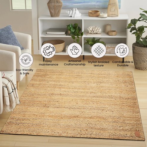 - STYLE, COMFORT AND SUSTAINABILITY: Elevate your home décor with the perfect blend of style, comfort, and sustainability. Our handmade jute rugs offer timeless elegance and lasting durability, making them a cherished piece of art in your home. Experience the natural beauty and craftsmanship that enhance your living space beautifully.