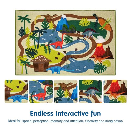 - The Kids Dinosaur Carpet is an ideal addition to various environments such as classroom, children’s bedroom, playroom, preschool, elementary school, daycare, or public libraries. Versatile in its application, you can utilize it as a game pad for interactive play, a crawling mat for young toddlers, or as a large carpet for domestic use, providing both functionality and a fun dinosaur-themed experience