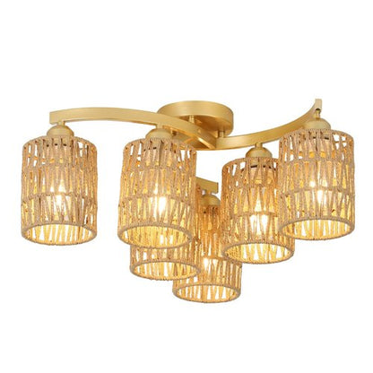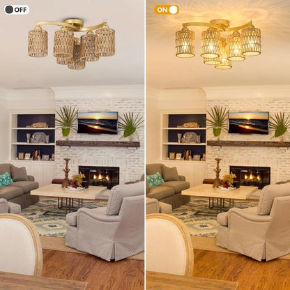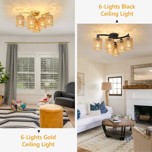 - 6 Lamp Gold Ceiling Light Fixtures - Bribyit semi flush mount ceiling light is made of hand-woven natural rattan and durable metal, which is more safety and healthy. 6 lamp head design is great for illuminating large spaces, making it an ideal living room lamp or dining room light fixtures; the hollow lampshade design casts 360°of light and shadow throughout your space, creating a warm and comfortable atmosphere.