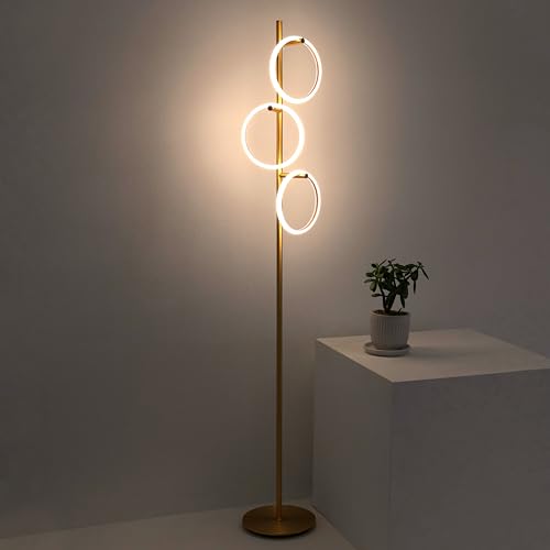 - Contemporary Tree Floor Lamp: The Brightech Saturn standing lamp uses an original design to provide opulence to your bedroom, living room, or office. With a gold/brass finish and circular hanging lights, you’d be hard-pressed to find this design anywhere else. The lights mesh with the simple stem and help this lamp for living rooms work with contemporary, mid-century, modern, and Asian decorative styles. Post-modern architectural lines help this tall lamp work wonderfully in any configuration.