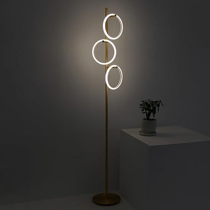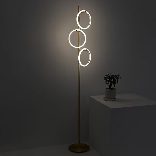 Brightech Saturn Floor Lamp, Great Living Room Decor, Tall Tree Lamp for Offices, Contemporary Standing Lamp with 3 LED Lights for Bedroom Reading - Gold/Brass