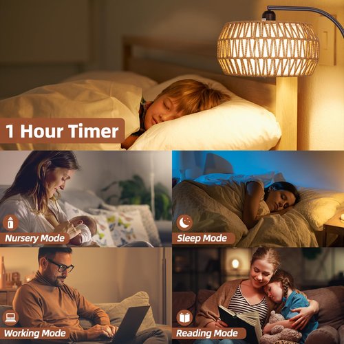 - Humanized Design: Our arching boho floor lamp offers four preset modes (nursery/reading/sleep/working) to meet your different lighting needs. Set a 1-hour timer for a cozy bedtime atmosphere, and enjoy the convenience of not having to worry about turning off the bronze floor lamp