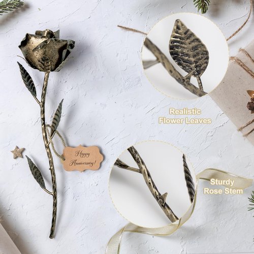 - Everlasting Artwork: Each rose is handcrafted by our experienced craftsmen, one of a kind. Every metal rose is unique and has its own distinctive beauty. Makes a great bronze 8th anniversary gift for her. Measures: 11.8×3 In.