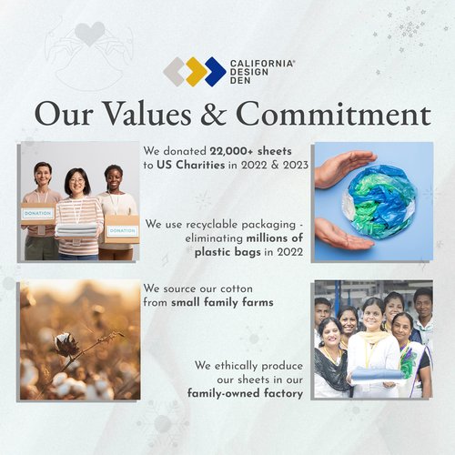 - Social Responsibility: In 2022 & 2023, we donated 22,000+ bedding pieces to US charities. Our products are engineered to meet the highest standards of quality. We are committed to addressing any product concerns promptly and efficiently.
