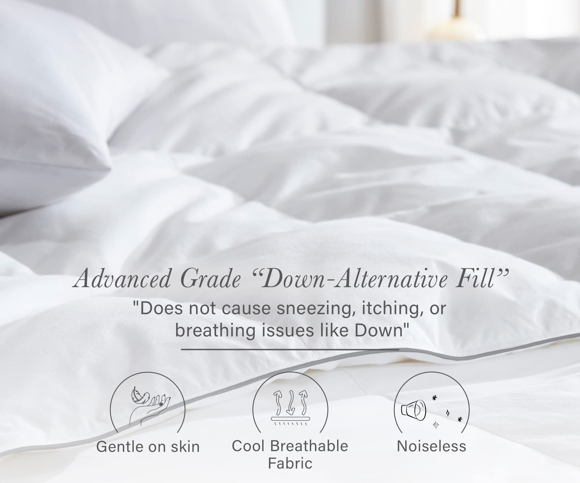 - Affordable Luxury Bedding - Indulge in the luxury of a real down comforter without breaking the bank. Our queen down-alternative duvet insert looks and feels like real down, perfect for families wanting luxury without maintenance or potential health issues.