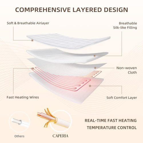 - PREMIUM QUALITY: Caperia Quilted heated mattress pad is both skin-friendly and crafted with premium breathable Quilted premium polyester materials to safeguards your bed against spills and pet accidents, ensuring your mattress stays clean and fresh.