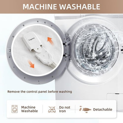 - 5-YEAR Guarrantee: Caperia heated mattress pads are designed for safety and reliability, ensuring maximum protection and backed by a 5-YEAR Guarrantee. They are machine washable to keep your blankets fresh and hygienic for years.