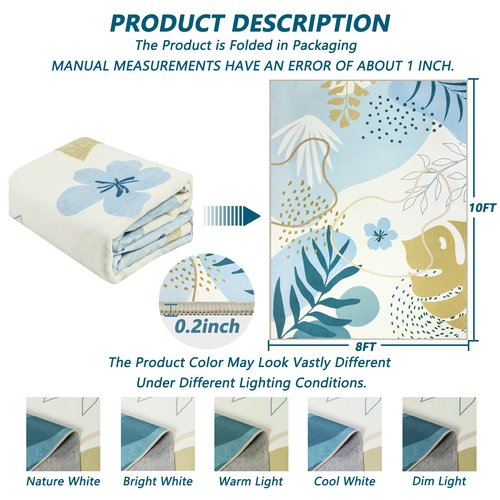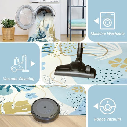 - [Machine Washable Rugs]:our washable rugs botanical area rugs convenient maintenance. Use a handheld vacuum cleaner can quickly remove dust and debris. Wash in cold water with a mild detergent, avoiding chlorine or bleach. This helps maintain the shape and colors after washing.