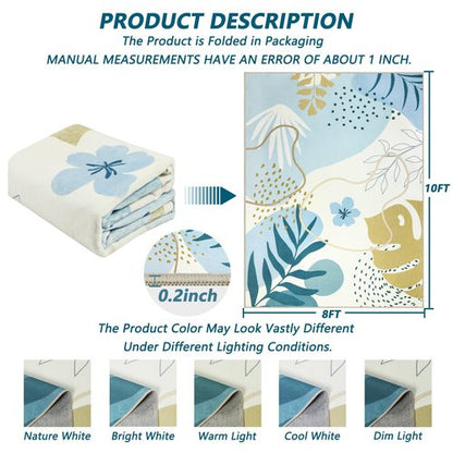 Capslpad Area Rugs 8x10, Boho Rug for Living Room, Washable Rugs, Low Pile Soft Non-Shedding, Blue Botanical Print Rug for Bedroom, Office, Classroom, Nursery, Dining Room