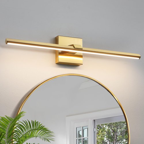 - 【Unique & Modern Design】: Our gold bathroom light fixtures are made of gold finish and linear silicone lampshade, waterproof and anti-rust. Redefine your bathroom space with 18W LED vanity light bar, which provides 1530 lumens of bright light and warm ambiance with 3500K color temperature.