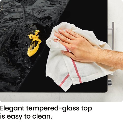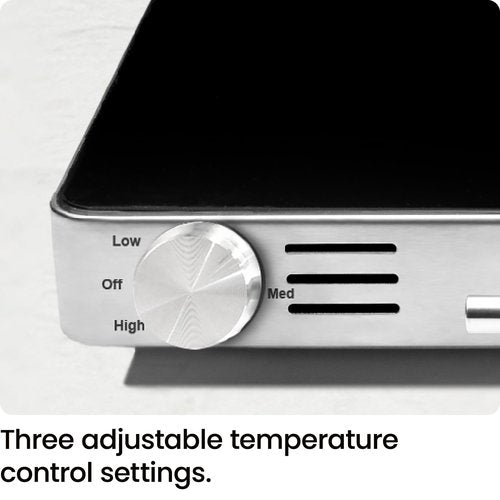 - SLEEK GLASS TOP: Sleek space saving design with black tempered glass top and stainless steel accents looks great on any table or buffet. Revolutionary glass plate design makes cleaning a breeze.