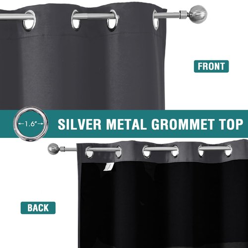 - SET DETAILS: Set of 2 total blackout curtain panels per package. Each lined curtain measures 52 inch wide by 102 inch long with 8 silver metal grommets (1.6 inch inner diameter) on top, easy to install and slide.