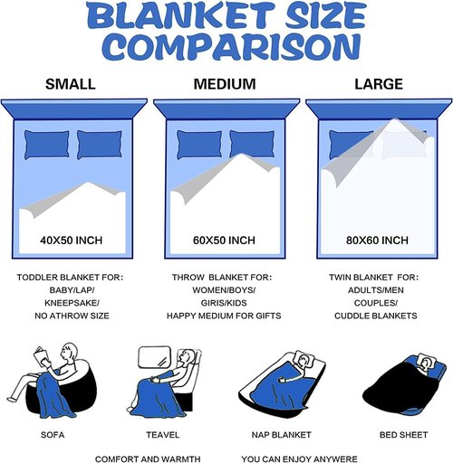 - Size: Three Sizes Available, 40x50 Inch, 50x60 Inch, 60x80 Inch (w X L). Fits Most Kids, Teens, Adult.