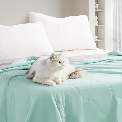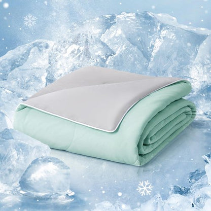 COHOME Cooling Comforter King/Cali King, Cooling Blanket for Hot Sleeper and Night Sweats, Cold Touch Fabric Absorbs Body Heat, Double-Sided Cool Design Soft Fluffy (Green, (108"x90"))