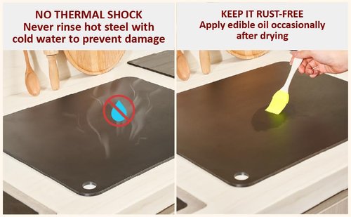 - Handle Included for Easy Carrying – Designed for convenience, the handles of steel pizza stone make it effortless to transfer your pizza from the oven or grill to the table.