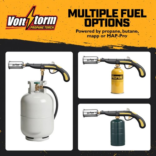 - INTENSE FLAME POWER - The Voltstorm Cooking Torch delivers an ultra-powerful flame that sears steak to perfection. Featuring a 2.3" wide nozzle, it heats up to 2500°F with a maximum output of 100,000 BTU for professional-grade cooking results, all with a clean, odor-free burn.
