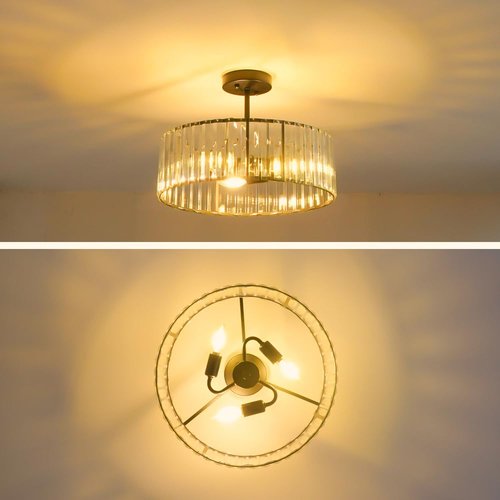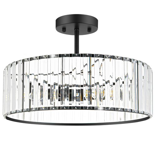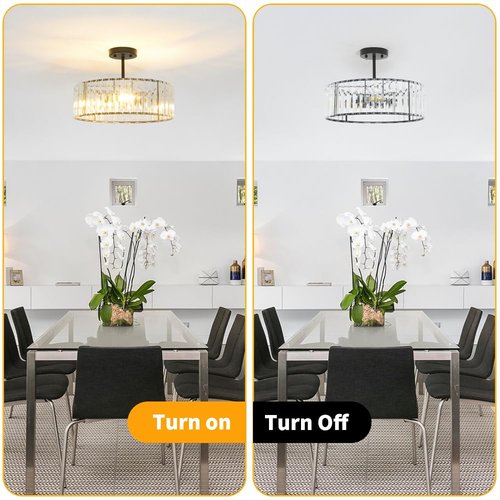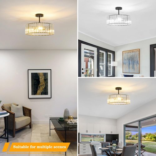 - 【Semi Flush Mount Ceiling Light 】This matt black crystal ceiling light fixture with high-quality crystals and metal frame which is reflect the elegance and beauty of the modern crystal chandelier, and the flashing crystal makes the room more dynamic
