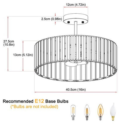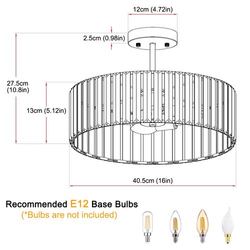 - 【Modern Ceiling Light Fixture----Size 】The matt black crystal ceiling lamp overall: L16in W16in H11.6in. 3*E12 base bulb is required (Bulb not included), such as incandescent, LED, CFL and halogen bulb(Max 40W)
