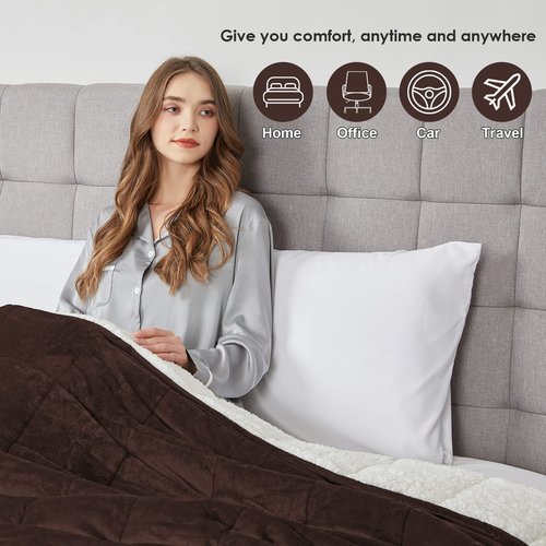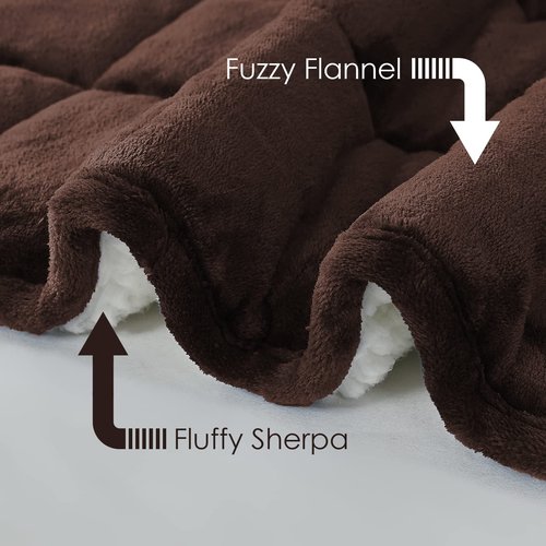 CYMULA Sherpa Weighted Blanket Queen Size - 60"x80" 20lbs Soft Plush Flannel Fleece Heavy Blankets for Adults - Cozy Warm Snuggly Fuzzy Throw Blanket for Bed - Gifts for Men Women Christmas Brown