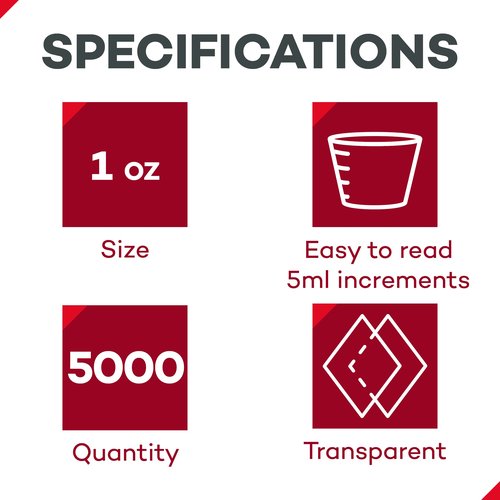 - Dealmed Medicine Cups – 5000 Medicine Measuring Cups, Graduated, 1oz Disposable Plastic Medicine Cups, Ideal for Doctor's Offices, School Nurse's, Hospitals, at Home and More