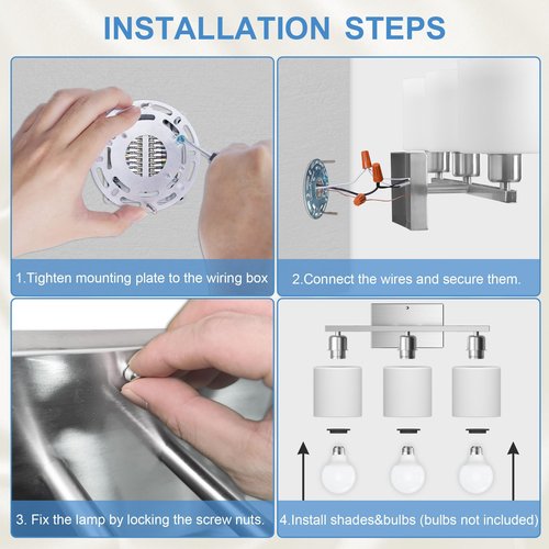 - Durable Vanity Lights for Bathroom: Kindly remind you to wear gloves to avoid scratches when installing the wall lights. Please consult a qualified electrician if you are not sure how to install it.