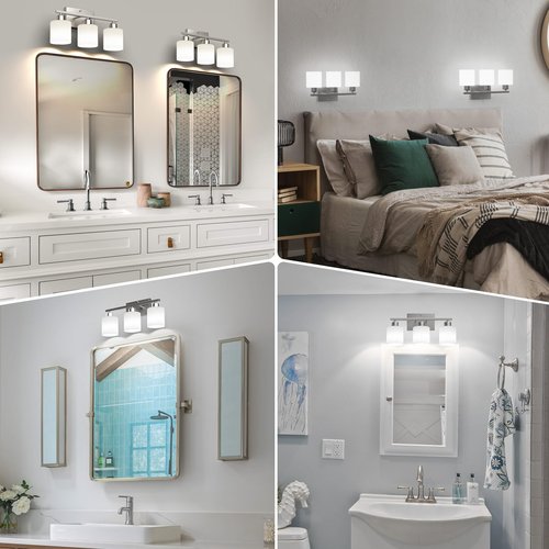 - Easy Installation Bathroom Vanity Light: These bathroom vanity light fixtures are easy to install, with all necessary mounting hardware included. You can easily mount them over a mirror or on any wall surface. The 3-light vanity lights can be installed in an upwards or downward position. Choose the direction you like as a special decoration in your room.