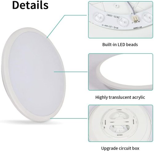 - 【Bright and Energy Efficient】: 12-inch Round Flush Mount Ceiling Light made with high-quality LED chips can provide 2100 lumens of bright, cool white light with a color temperature of 6500K. It's energy-saving and has a lifespan of up to 30,000 hours.