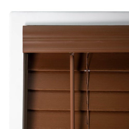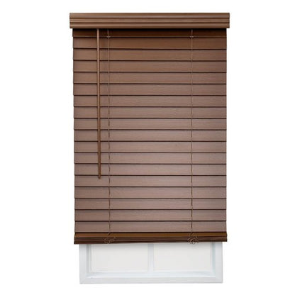 Details: Introducing our Faux Wood Venetian Blinds – a timeless window treatment for homes and offices. These 2-inch slat horizontal blinds combine elegance, functionality, and safety. Ensuring a clean and inviting atmosphere, they prioritize safety with cordless operation and a crown valance. Perfect for both residential and commercial spaces, they offer versatility, durability, easy maintenance, and resistance to moisture. Excellent for use as kitchen, bathroom, bedroom, and living room blinds. The 2" PVC faux wood slats with a wood grain appearance offer room darkening and privacy, complemented by a coordinating valance. Easily mount inside or outside your window frame and adjust height effortlessly. Complete with mounting hardware and installation instructions. Customized and made-to-order by DEZ FURNISHINGS. Blinds actual width will arrive ½" narrower for a snug fit inside your window, allowing for end caps and hardware. For an outside mount, just order ½" wider for better covering. Elevate your space with these stylish, practical Faux Wood Blinds.