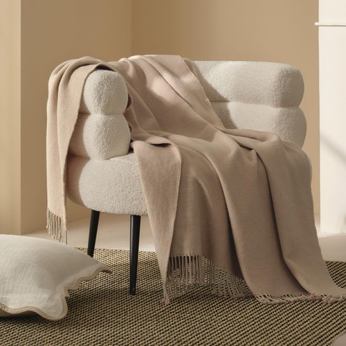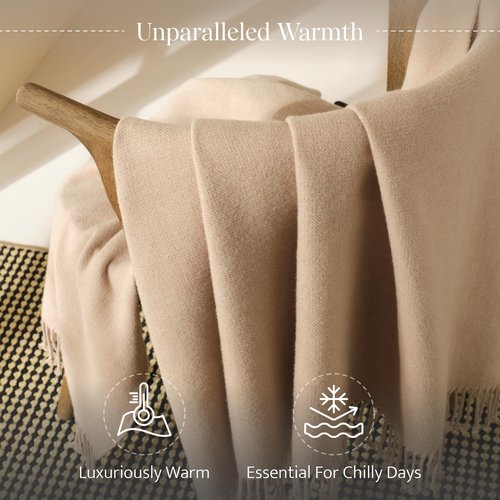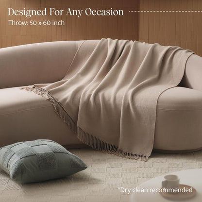 Double Stitch Cashmere Cotton Throw Blanket, Soft & Cozy Blanket with Decorative Fringes for All-Seasons, Ideal for Couch & Bed, Classic Design with Gift Box, Milky Tan, 50" x 60"