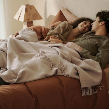 - 【Mongolian Cashmere and BCI Cotton】Featuring a luxurious blend of 5% Mongolian cashmere and 95% BCI cotton, this throw blanket stands as a tribute to a natural lifestyle. The esteemed Mongolian cashmere, renowned for its exceptional quality, enhances the blanket's resilience and durability.