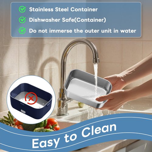 - 【Easy to Clean】The detachable stainless steel container, fork, spoon, and plastic compartment of this heated lunch box are dishwasher-safe, saving time and effort in your busy life. PS: Avoid water contact with the heating base to prevent short circuits, please wipe it with mild soapy water.