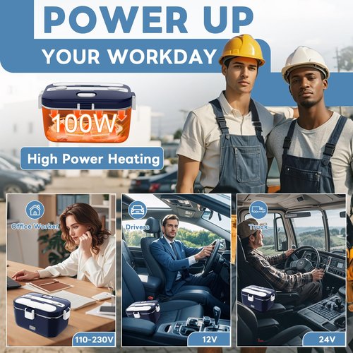 - 【3-in-1 Electric Lunch Box】This electric heating lunch box supports 110V-230V for home/office, 12/24V for cars and trucks, ideal for who frequently on the go or without access to a microwave, such as truck drivers, office workers, travelers. This electric lunchbox food warmer will promote a healthier lifestyle for you.