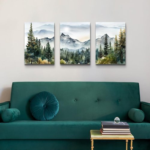 DZRWUBHS Large Wall Art for Living Room Wall Decoration for Bedroom Office Decor Abstract Mountain Forest Landscapes Ink Painting Framed Canvas Art Prints Ready to Hang Pictures Modern Home Decor