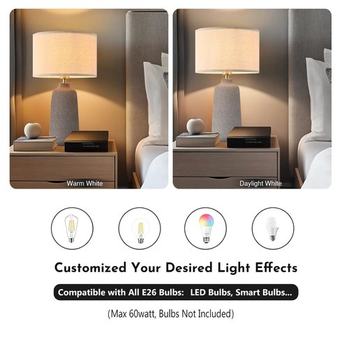 - 【Easy Installation】Our 22-inch nightstand lamp set of 2 comes with all necessary accessories and detailed installation instructions, this table lamp for the bedroom Includes 2 lampshades, 2 ceramic bases, and 1 user manual, the maximum can be carried by 60W, a wide range of bulb types can be adapted, such as A19, T45, ST64 dimmable LED, incandescent, Alexa smart bulb, just follow the installation steps, and takes you 2 minutes, no tools needed, just need take to install all parts together, then you will get a perfect bedroom lamp for the bedside lamp.