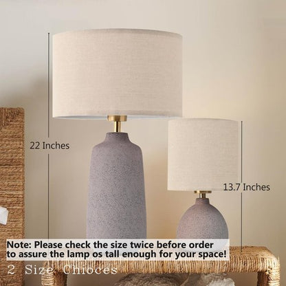 - 【Well-Designed】The ceramic table lamp uses a one-piece lampshade and is crafted from glazed ceramic of earthy color. The soft light under the white linen lampshade and the cylindrical ceramic base make the space warm and brighter. This set of 2 table lamps will enhance the ambiance of your space, beautifully crafted to complement any decor style. Designed to adorn your nightstand or bedside, this lamp will add a glance of elegance to your bedroom, living room, and guest room.