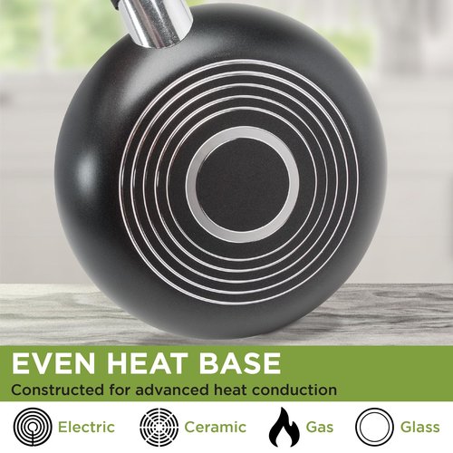 - PREMIUM POTS AND PANS: Multilayer cookware construction provides fast and even heating. Comfort grip handles provide a secure grip. Tempered glass lids allows you to monitor your food as it cooks.