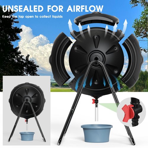 - Quick and Space-Saving: The black compost tumbler helps to absorb sunlight to raise the temperature and speed up composting, making composting super easy. Compact size for outdoor use, beautiful to place in your yard.